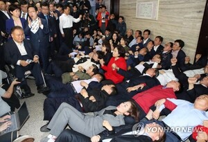 [법률방송뉴스]'국회 패스트트랙 충돌'에 연루된 국민의힘 전현직 의원들이 1심에서 벌금형을 선고받았다.서울남부지법 형사합의11부(장찬 부장판사)는 이날 오후 2시 특수공무집행방해 등 혐의로 기소된 국민의힘 나경원 의원과 황교안 전 국무총리 등 자유한국당(국민의힘 전신) 관계자 26명에 대한 선고 공판을 열었다.재판부는 사건 당시 자유한국당 원내대표였던 나 의원에게 벌금 총 2,400만원을, 당 대표였던 황 전 총리에게 벌금 총 1,900만원을 선고했다.현재 국민의힘 원내대표를 맡고 있는 송언석 의원은 벌금 총 1,150만원을 선고받